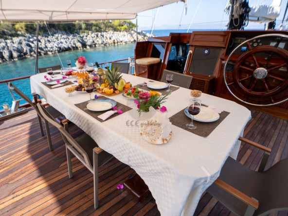 Yat kiralamanız için tam pansiyon konaklama hizmeti sunuyoruz. Standart, lüks veya deluxe menüler arasından seçim yapabilir ve kişi başı günlük 55 ila 85 Euro arasında ödeme yapabilirsiniz.