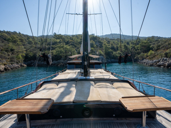 Arielle 1'in en dikkat çekici özelliklerinden bir diğeri ise ön tarafta yer alan masa ve dinlenme alanı. Bu alan, özellikle manzaranın keyfini çıkarırken dinlenmek ya da yemek yemek için ideal. Yatın her detayında misafirlerinin rahatlığı düşünülerek tasarım yapılmış, lüks ve fonksiyonellik mükemmel bir uyum içinde.