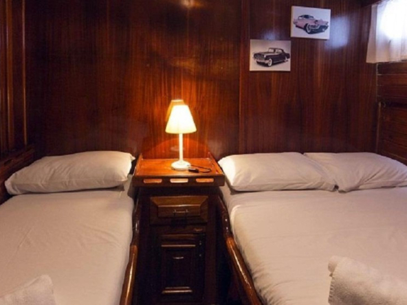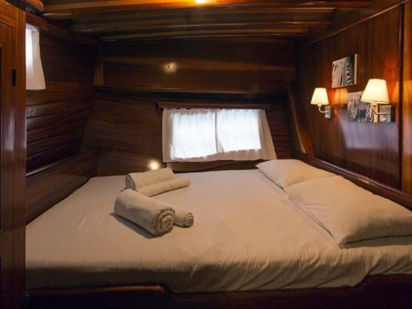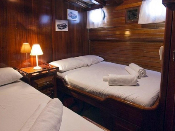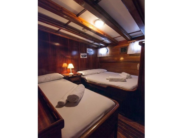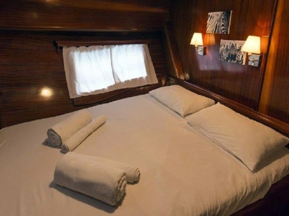 Konaklama kapasitesi oldukça geniştir: 4 çift kişilik ve 4 üç kişilik kabin olmak üzere toplam 20 kişiyi ağırlayabilir. Tüm kabinlerde klima, özel duş ve tuvalet bulunmaktadır. Güneşlenmek isteyen misafirler için de yeterli sayıda güneşlenme minderi mevcuttur.