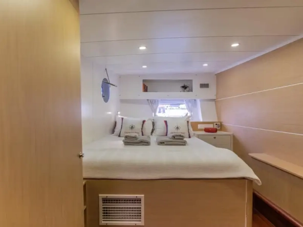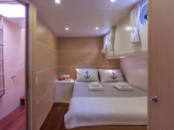 Kabinler, ferahlık sağlayan açık renklerle şık bir şekilde inşa edilmiştir ve her biri özel banyo, tuvalet / duş kabini ve klima ile donatılmıştır. Bu hoş ve modern olarak tasarlanmış yaşam alanları, turkuaz sularda mavi yolculuk yaparken rahatlatıcı bir atmosfer sunar. Elifim 11 gulet yatıyla seyrederken yüksek kaliteli bir hizmet sunar. Her misafirin yeterli güneşlenme koltukları, oturma alanları ve hizmetleri bulunmaktadır. Elifim 11, ziyaretçilerimize aynı anda konfor, zarafet ve huzur sunmak için tasarlanmıştır.
