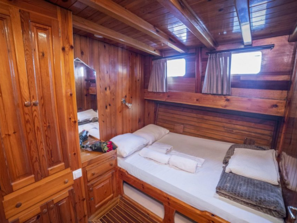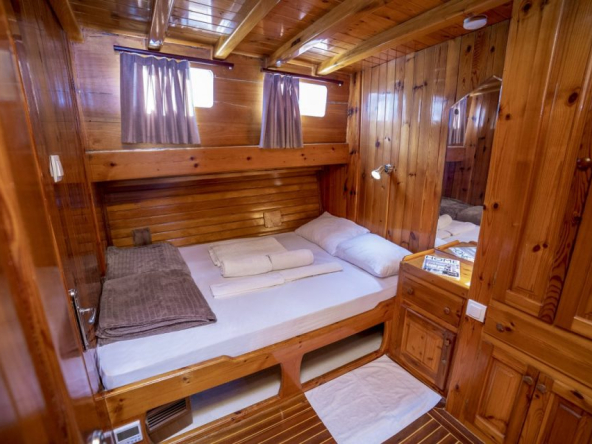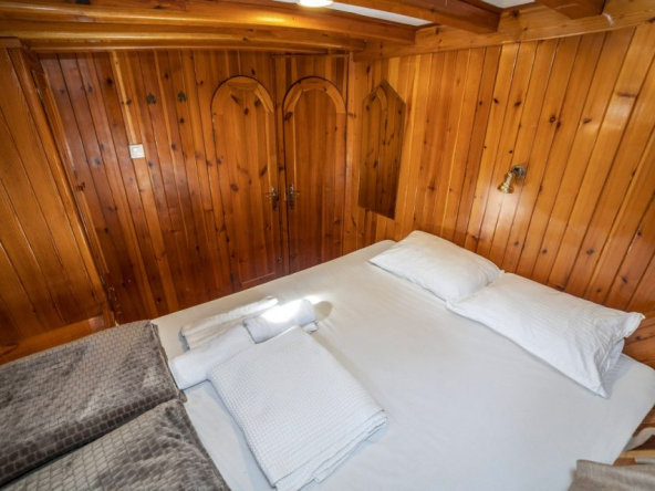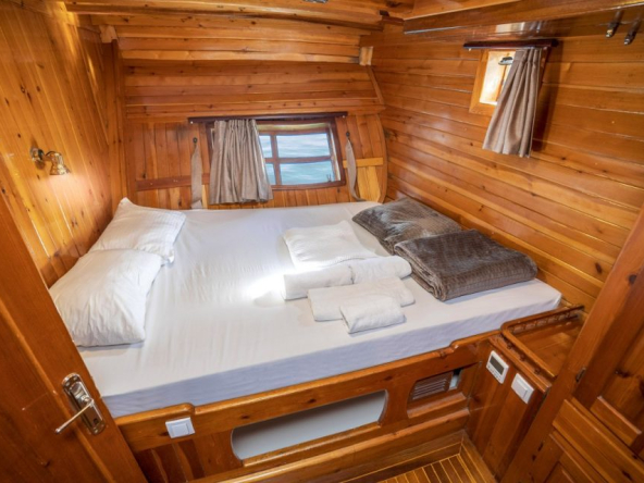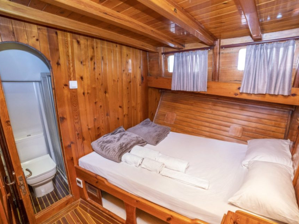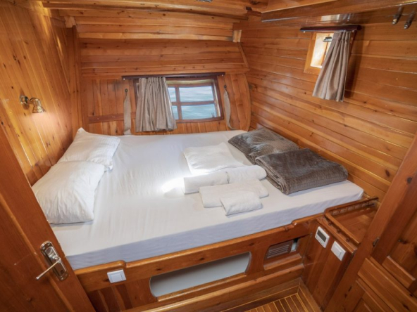 Yat üzerinde, her biri özel duş, tuvalet ve klima ile donatılmış 8 adet çift kişilik kabin bulunur. 16 kişilik konaklama kapasitesi ile kalabalık gruplar için de ideal bir seçenektir. Kabinler, uzun bir keşif gününün ardından dinlenmek ve yenilenmek için sakin ve konforlu bir ortam sunar.