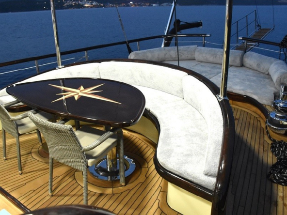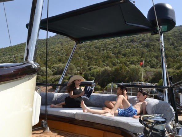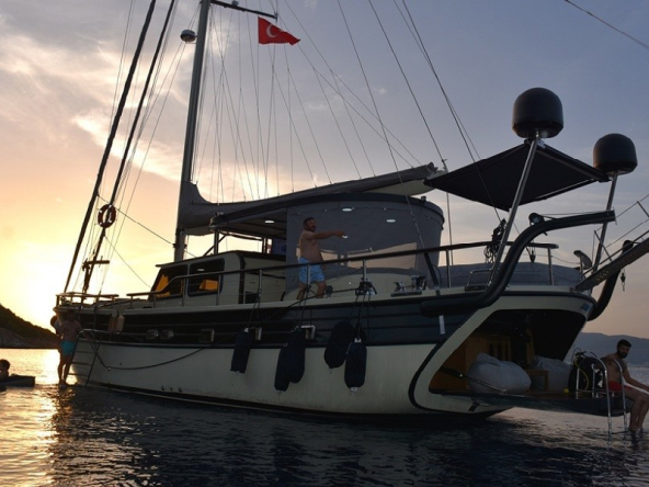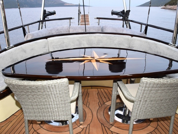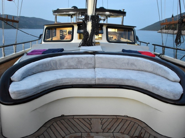 Guletimiz; modern bir mutfak, iç ve dış mekan yemek alanları ile tatilinizi keyifle geçirmeniz için tasarlanmıştır. Klimalı salon, TV, DVD oynatıcı ve müzik sistemiyle hem dinlenmek hem de eğlenmek için ideal bir atmosfer sunar. Ferah güneşlenme güvertesi, denizin huzurunu yaşarken güneşin tadını çıkarabileceğiniz geniş bir alana sahiptir.