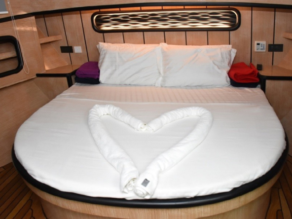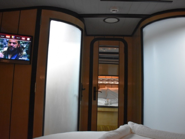 Gulet Nostalgia, 1 master kabin ve 2 çift kişilik kabin olmak üzere toplamda 6 misafiri rahatça ağırlayabilir. Her kabin, özel duş ve tuvalet ile donatılmış olup konukların mahremiyet ve konforu ön planda tutulmuştur. Tüm kabinlerde bulunan klima sistemi, sıcak yaz günlerinde serin ve ferah bir konaklama deneyimi sunar.