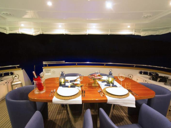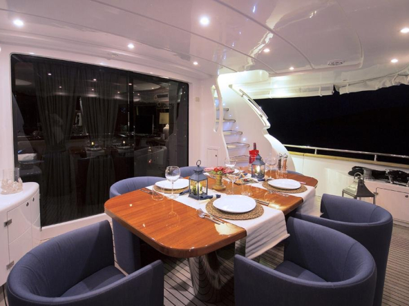 Tam donanımlı mutfaktan ferah yaşam alanına, güneşlenme güvertesinden dış mekandaki yemek alanına kadar, Caelum her ayrıntısıyla öne çıkar. Güneşin tadını çıkarabileceğiniz geniş alanlar, muhteşem manzaralara karşı yemek keyfi ve rahat bir atmosfer, bu yatı benzersiz kılar.