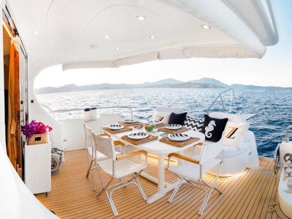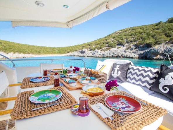 Yat kiralamanız için tam pansiyon konaklama hizmeti sunuyoruz. Standart, lüks veya deluxe menüler arasından seçim yapabilir ve kişi başı günlük 55 ila 85 Euro arasında ödeme yapabilirsiniz.