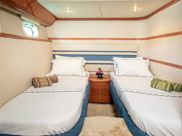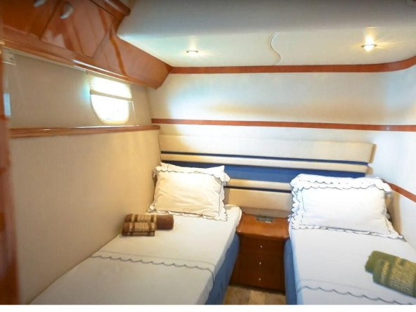 Motoryat Zeynep Lina, 2007 yılında inşa edilmiş olup, Türkiye’nin gözde marinalarından Bodrum Marina’da demirlemiş bir motoryattır. Şıklığı ve konforuyla öne çıkan bu muhteşem yat, 3 kabiniyle 6 kişiye kadar misafir ağırlayabilmektedir. İster sakin bir koyda huzurlu bir gece geçirin, ister marinada keyifli anların tadını çıkarın; Motoryat Zeynep Lina konforlu bir konaklama deneyimi sunar.